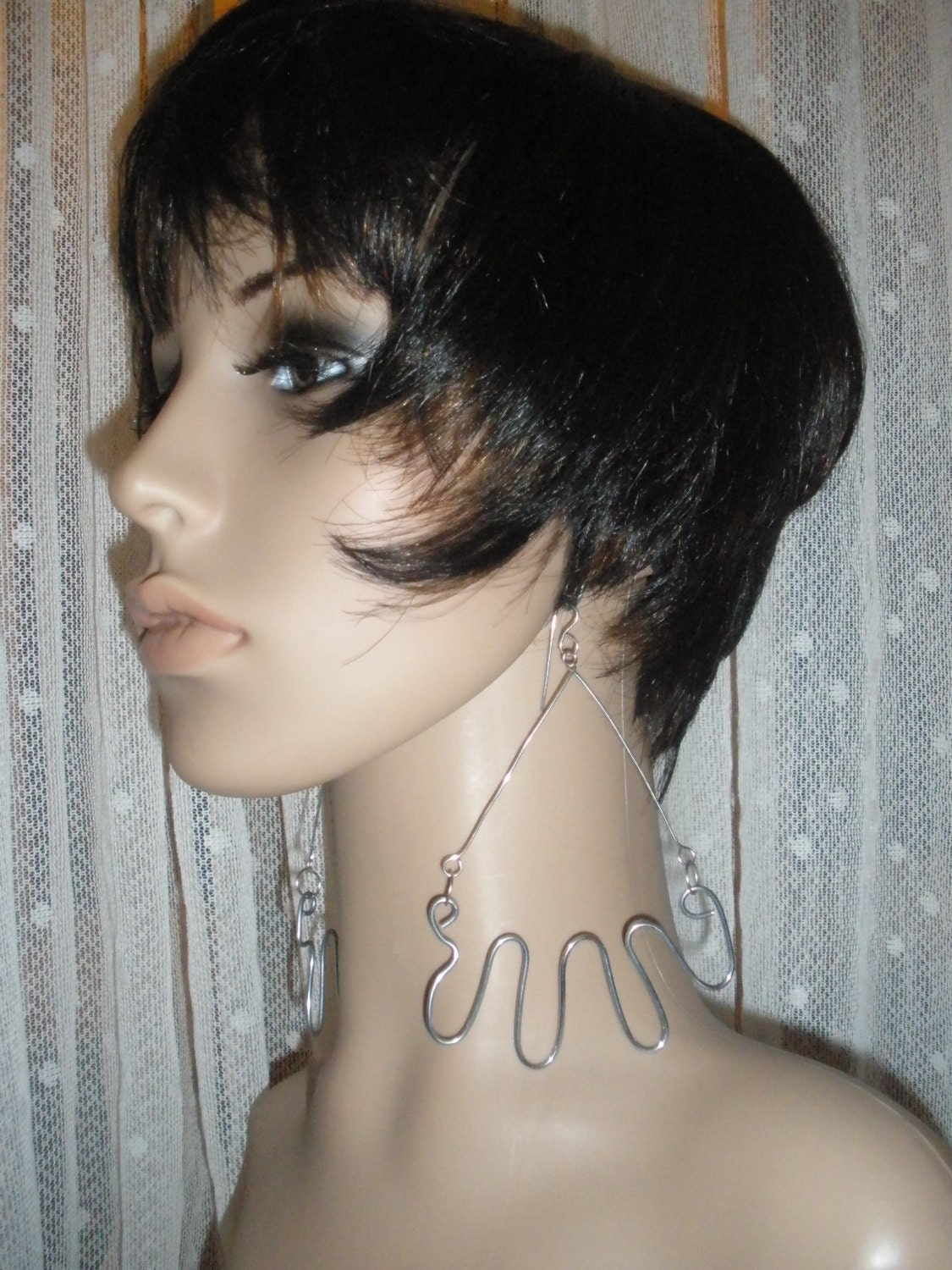 I believe these attractive looking earrings are going to look great on your ears. I have hand crafted them out of a beautiful strong polished wire. They will be a exciting pair of fashionable earring to own, and will look excellent in your ears, and will be fun to wear.